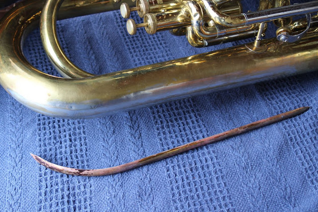 「楽器を切る」という神をも畏れぬ行為に怖気づいてかなり控えめな切り方ではあるが、切りすぎると当然ながら音程の調整幅が少なくなってしまう。とりあえずこれだけでも管の抜き差しでいちいち慌てふためくことはなくなった。さて取り返しのつかない「大改造」は実はここからが本番である。楽器の加工に「焼きなまし」を行うことがあるらしい。 真鍮を熱してゆっくり冷ますことで金属内部に溜まったストレスを取るのだという。あくまで感覚的な話だが、この楽器はストレスが溜りまくっている感じがするので焼きなましは効くのではないか。